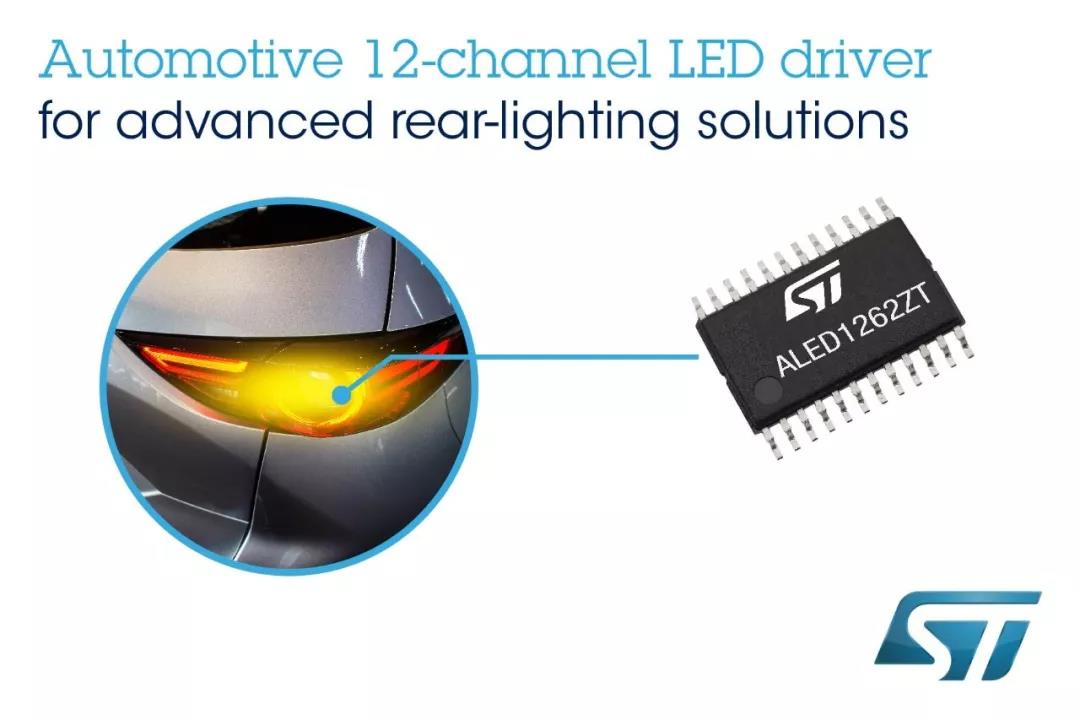 2019年10月9日——意法半导体ALED1262ZT 12通道LED驱动器可用于驱动当下流行的汽车后组合灯和室内照明灯,支持炫酷创新的视觉效果设计。